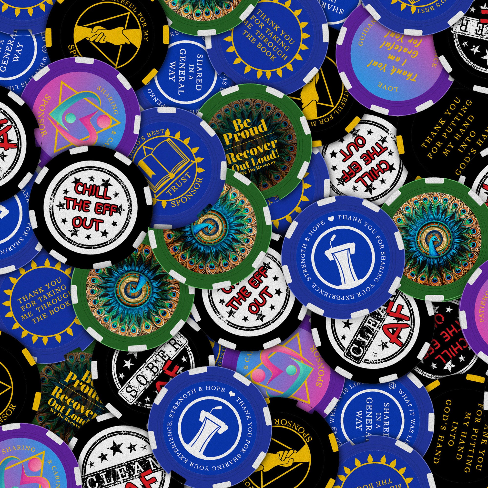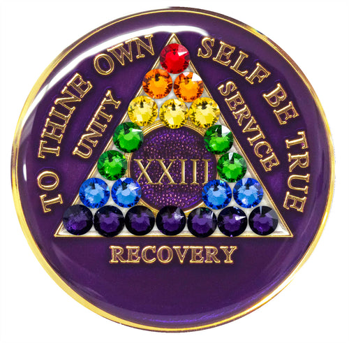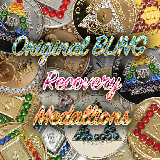 We are the home of the original Bling Crystalized Recovery Chips. Each of our crystalized line of sobriety tokens is hand crystalized by women in recovery. We believe that recovery is truly a gift and we seek to celebrate this with our collection of 12-Step Recovery and spiritual gifts.