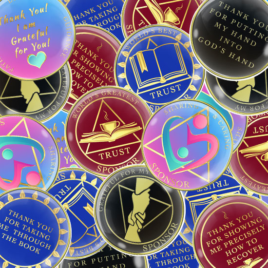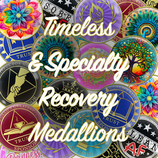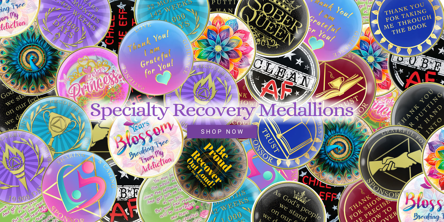 12 Step Recovery sobriety tokens, chips, coins and medallions are at the top of our list of high-quality, specialty gifts. These pieces are so important to commemorate our special birthdays, anniversaries and milestones (including clean time chips) and to acknowledge each other's accomplishments. We also feature collections of gift and anniversary cards for those special moments and a full selection of the essential 12-Step books, journals and meditation guides.