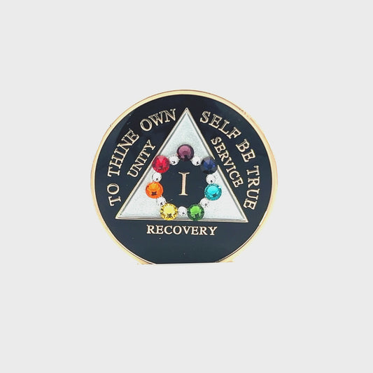 AA Recovery Medallion - Chakra Circle Bling Crystallized on Black
