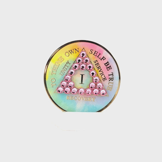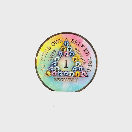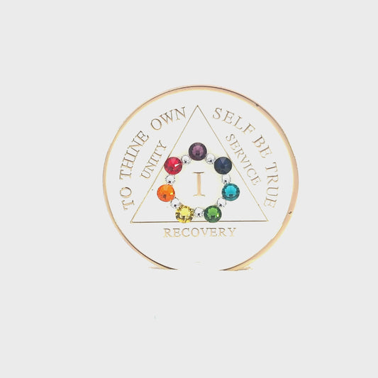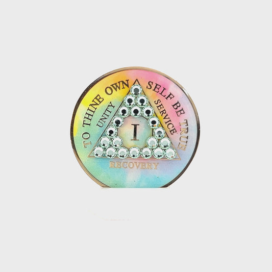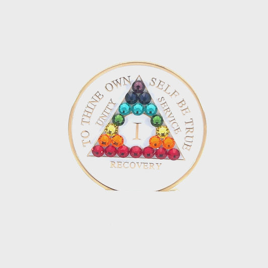 AA Recovery Medallion - Chakra Bling Crystallized on White