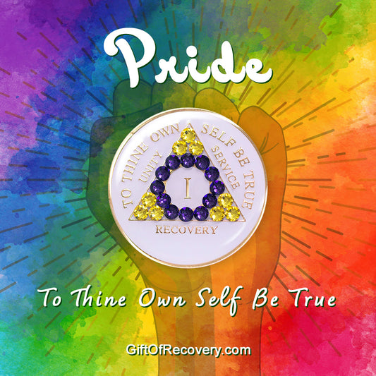 AA Recovery Medallion - Intersex Flag Bling Crystallized on White