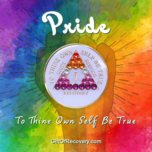 AA Recovery Medallion - Lesbian Flag Bling Crystallized on White