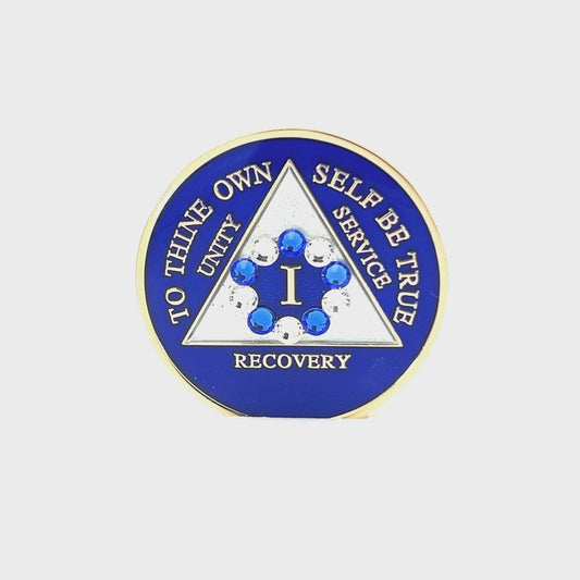 AA Recovery Medallion - 10th Step Bling Crystallized on Blue