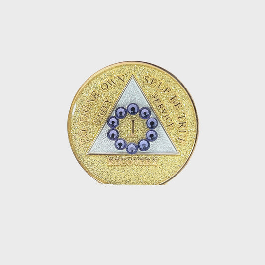AA Recovery Medallion - Unity Tanzanite Bling Crystallized on Glitter Gold