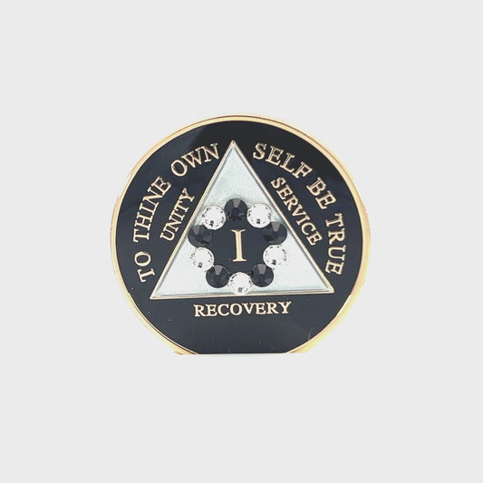 AA Recovery Medallion - 10th Step Bling Crystallized on Black