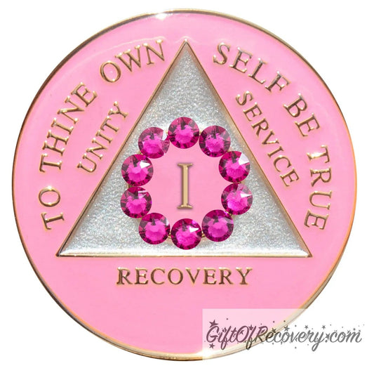 AA Recovery Medallion - Unity Pink Bling Crystallized on Pink