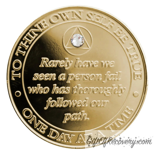 Sobriety Chip AA Girly Girl Bill & Bob Gold Diamond