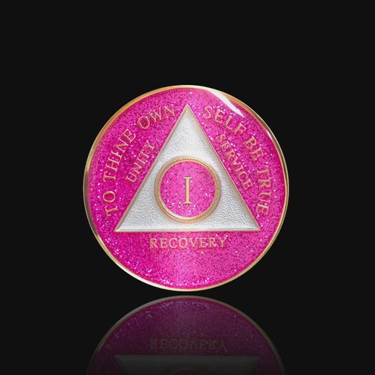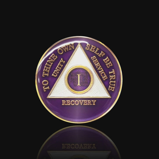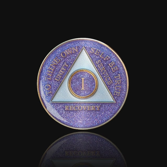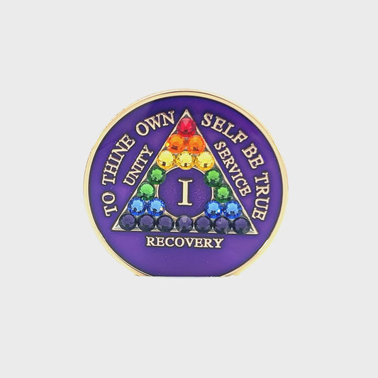 AA Recovery Medallion - Rainbow Crystallized on Purple