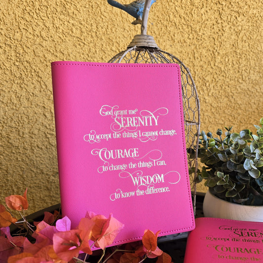 Book Cover | Silver Serenity Prayer | Pink with Chip Mount