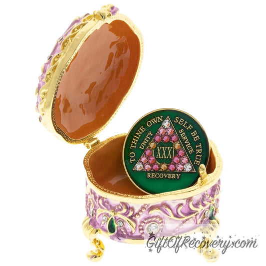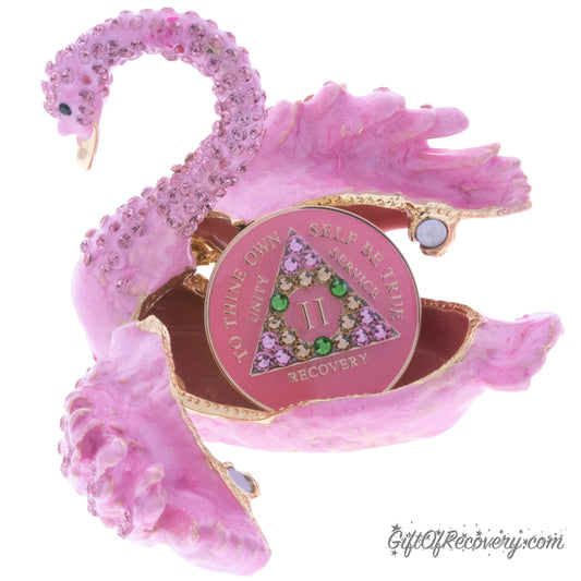 Pink Swawn Collector Bling Box/Sobriety Chip Holder (with Chip)