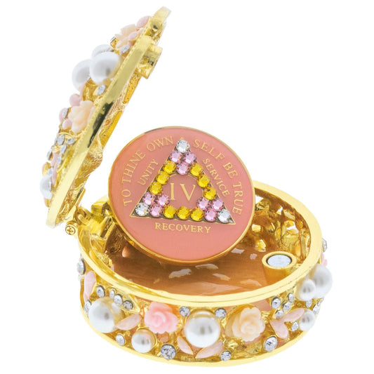 Pink Rose Collector Bling Box/Sobriety Chip Holder (with "Bloom" Chip)