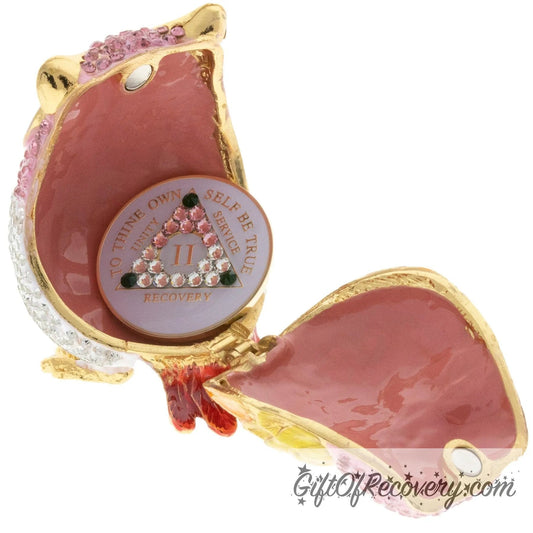 Pink Owl Bling Box/Sobriety Chip Holder (with Chip)