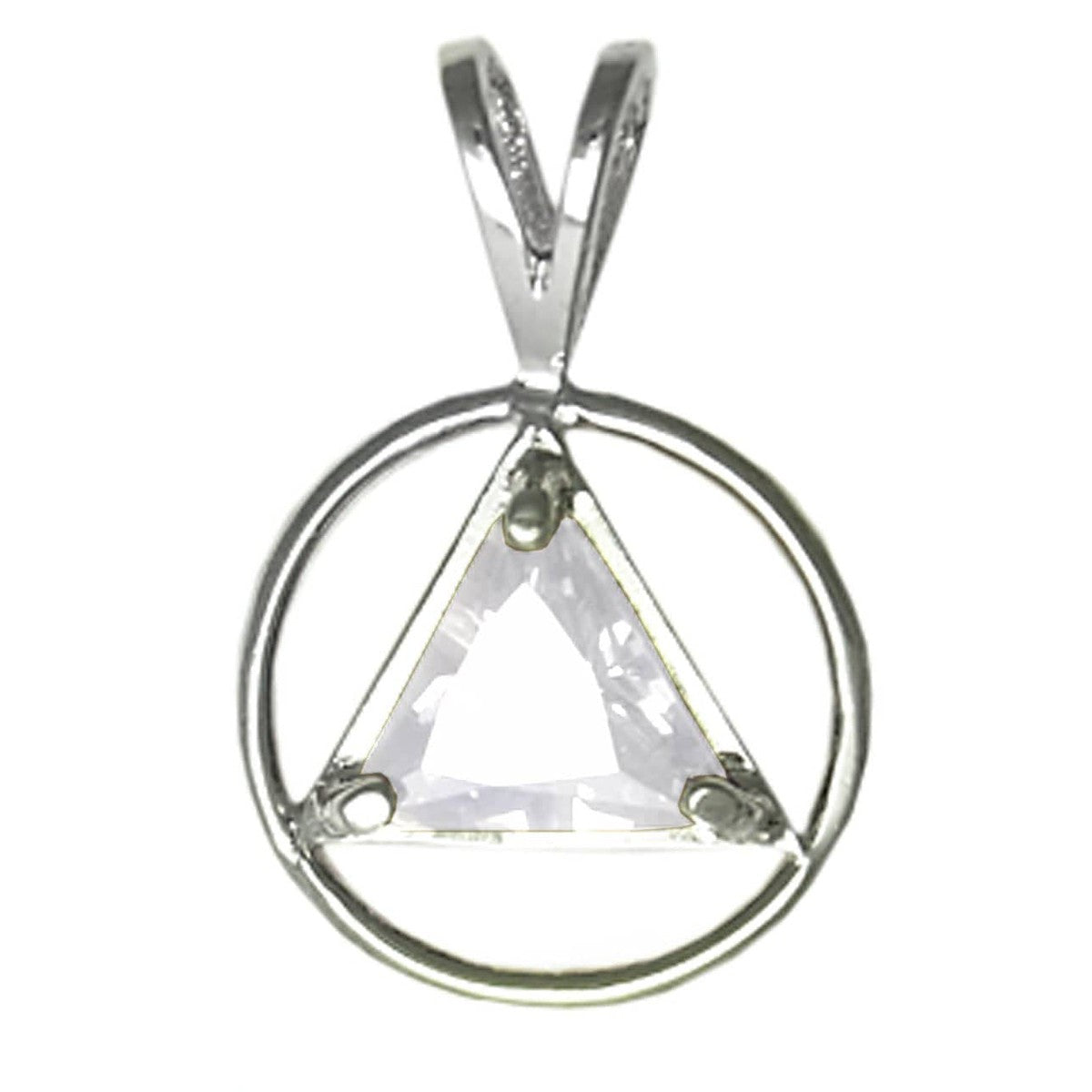 Sterling Silver Alcoholics Anonymous Pendant with Amethyst Cubic Zirconia Triangle – Wire Circle Design